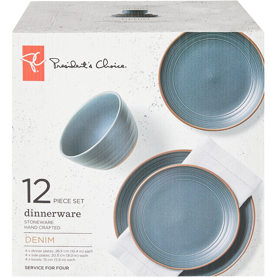 12 Piece Denim Dinnerware Set (Service For Four), Denim 12x1