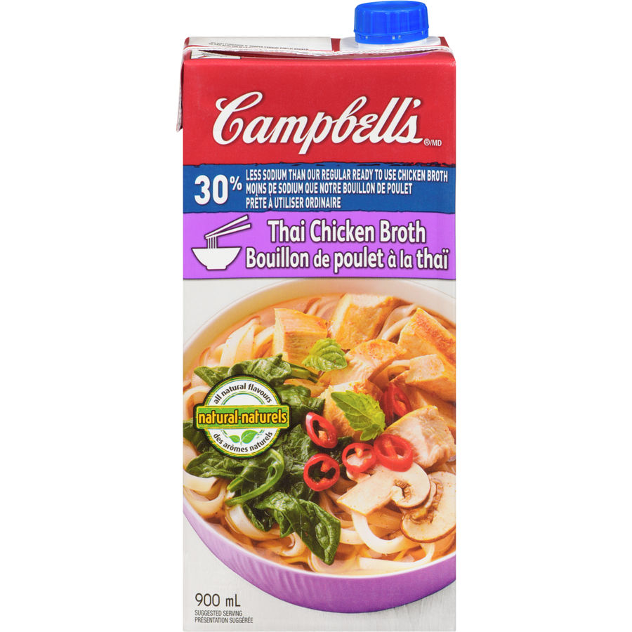 Campbells 30% Less Sodium Thai Chicken Broth 900 ml