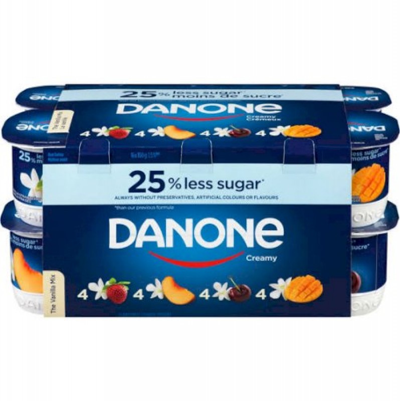 Danone, Creamy Yogurt, Strawberry-Vanilla/Peach-Vanilla/Cherry-Vanilla/Mango-Vanilla Flavour, 100g (Pack of 16)16x100g