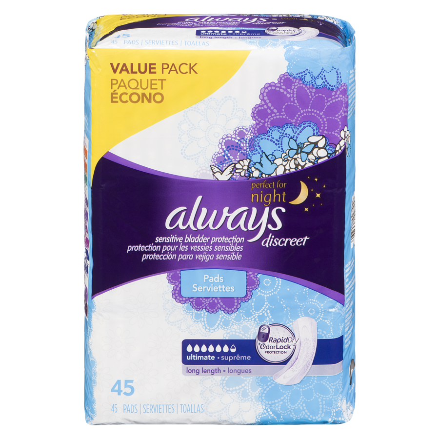 Discreet Maximum Pads, Ultra Long 45ea