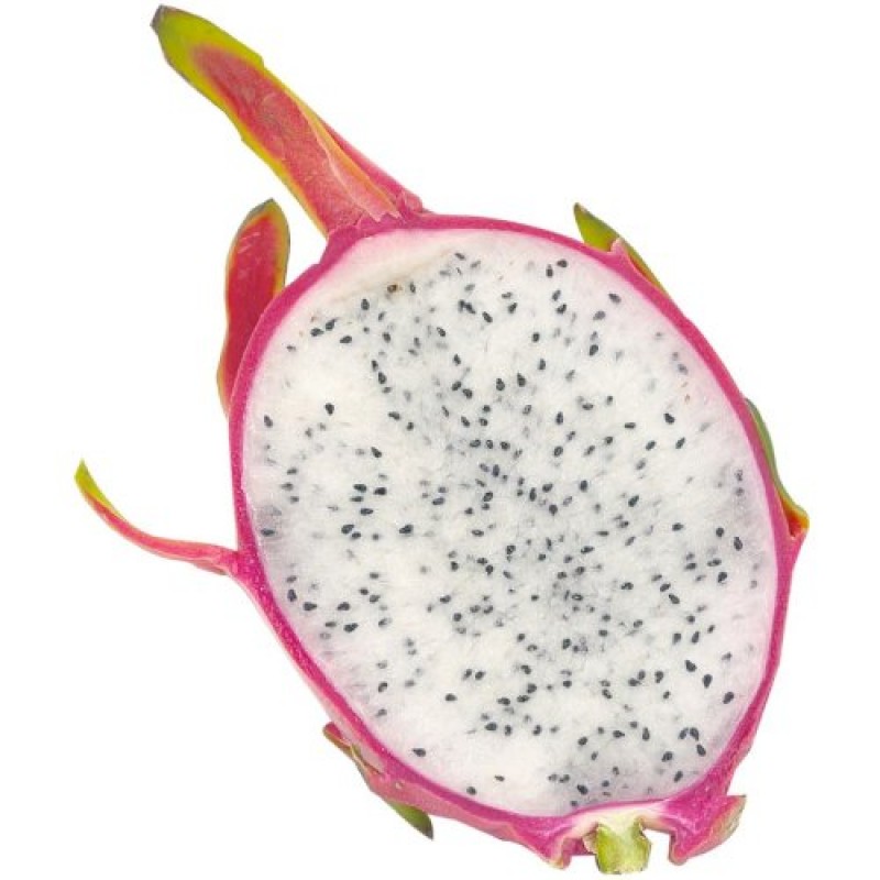 Dragon Fruit (or pitahaya) is a member of the cactus family and has a scaly rind that can be either bright pink or yellow. They are sweet and delicate with a flavour similar to kiwifruit. Cut your dragon fruit in half (the seeds are edible) and scoop out the flesh with spoon or dice it up and add to fruit salad.