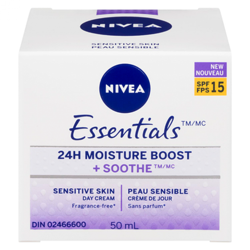 Essentials, 24H Moisture Boost, Soothing Day Cream, Sensitive Skin, SPF\\FPS 15, 50 mL
