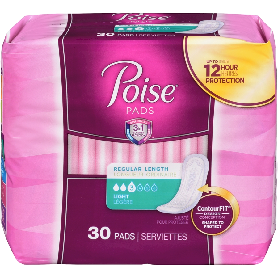 Incontinence Pads, Light Absorbency, Regular Length, 30 Count