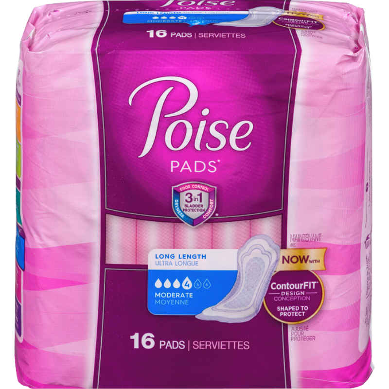 Incontinence Pads, Moderate Absorbency, Long, 16 Count
