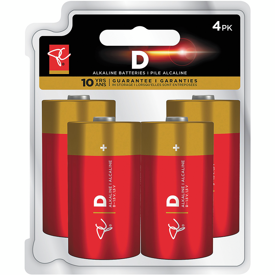 Long Life Alkaline Batteries, D 4x1ea