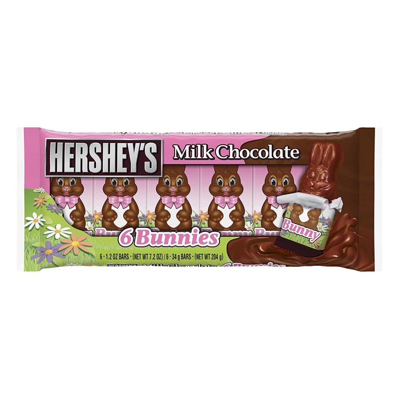 Milk Chocolate Bunnies Candy, Easter, 1.2 oz, Bars, 6 Pack
