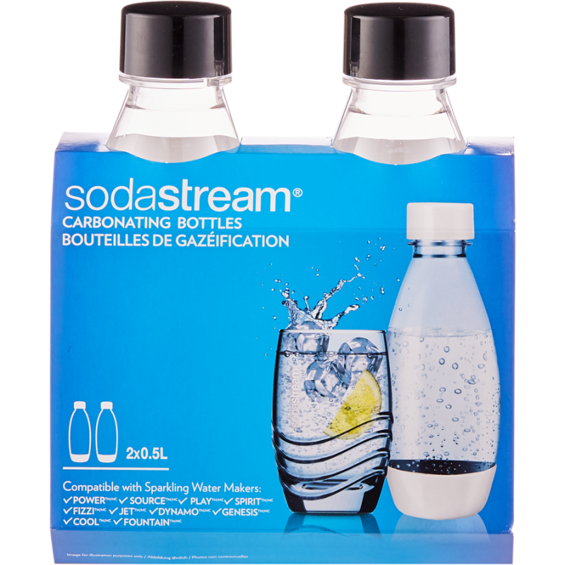SodaStream 0.5L Fuse Carbonating Bottles Black, 2 Pack 2*10ea