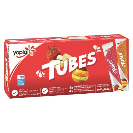 Yoplait Tubes, Fruit Punch & Strawberry Banana, 8x60g