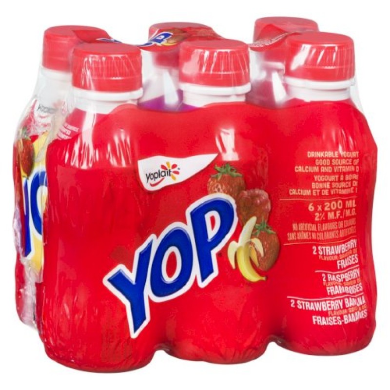 Yoplait Yop, Drinkable Yogurt, Strawberry / Raspberry / Strawberry - Banana, 6x200mL